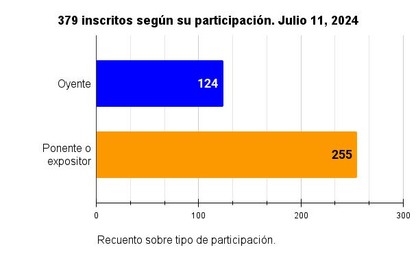 A continuación la representación de asistentes y participantes inscritos hasta el 11 de julio 2024.